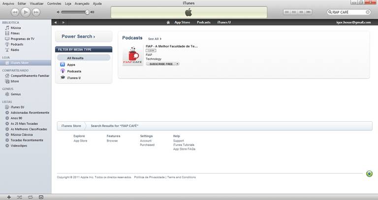 - Pronto! Sua assinatura foi registrada. Você já poderá acompanhar os podcasts do FIAP Café pelo item “Podcasts” da Biblioteca, disponível na coluna esquerda do seu iTunes.
