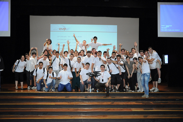 Em 30 e 31 de outubro, os estudantes dos terceiros anos dos cursos de Sistemas de Informação e de Engenharia da Computação participaram do AIRCUP – sob a coordenação do professor César Augusto Caetano – uma gincana dinâmica, na qual os alunos competiram em equipes para programar quadricópteros (modelo AR.Drone), controlados por tablets que tinham que localizar alvos em um campo de provas, utilizando para isso os conhecimentos adquiridos sobre programação, redes de computadores, gestão de projetos e processamento de imagens.
