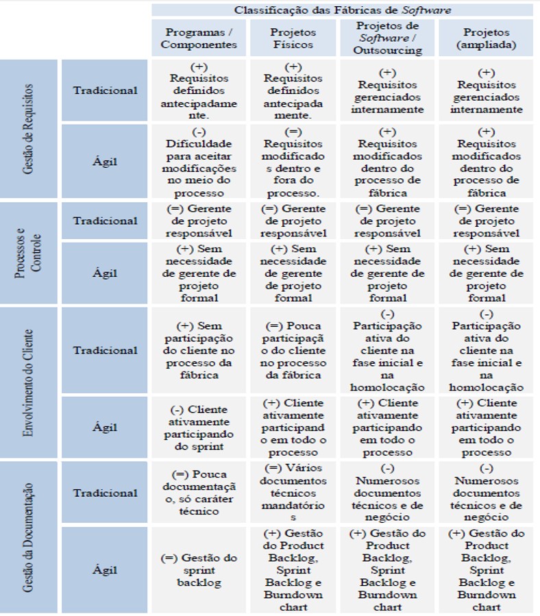 Impacto comparativo da adoção das premissas dos modelos tradicional e Agile nos distintos tipos de fábrica de software