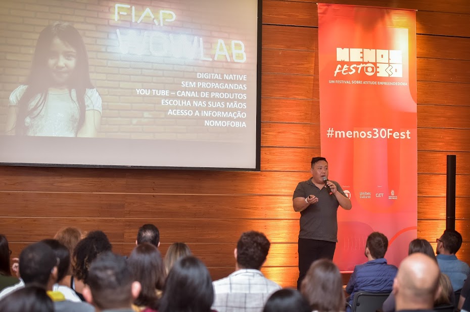 Em 10 de novembro, o diretor dos MBAs da FIAP, Eduardo Endo, ministrou uma palestra na 5ª edição da Menos30 FEST – evento promovido pela Globo Universidade. Ele falou sobre o impacto da tecnologia e das novas gerações na criação de um mundo mais digital. Cerca de 100 pessoas estavam presentes na palestra. “O Menos30 FEST é fantástico, com um público bem bacana de diversas idades e interesses. A organização foi exemplar, assim como o conteúdo. Os palestrantes são de alto nível, incluindo personalidades da Globo. Adorei participar do evento e a receptividade do público foi incrível” avalia o diretor.