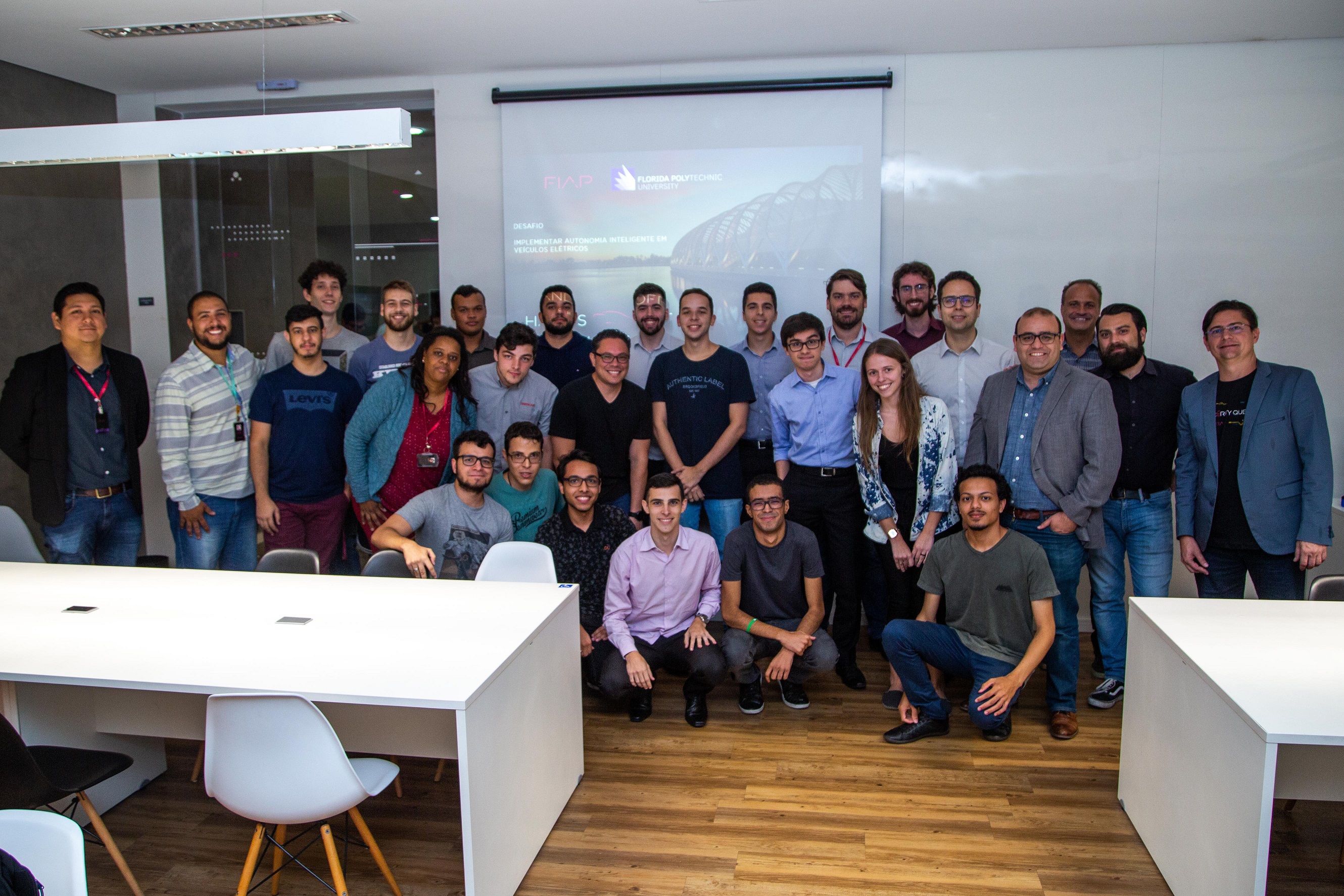Carros que se autodirigem, não necessitando de motoristas, deixaram de ser coisa de filme de ficção. Montadoras como Volvo, BMW, Mercedes-Benz, Ford e Land Rover já estão testando seus veículos autônomos. Empresas de tecnologia como Google e Uber também anunciaram desenvolvimento de automóveis inteligentes. Em 27 de março de 2019, a FIAP e a Florida Polytechnic University celebraram mais um ano de parceria, com o lançamento do desafio para implementar autonomia inteligente em veículos elétricos aos alunos do 4º ano de Engenharia Mecatrônica da FIAP.O diretor acadêmico da FIAP, prof. Dr. Wagner Sanchez, abriu o evento, apresentando um histórico sobre os desafios desenvolvidos pelos alunos da FIAP desde a implantação deste tipo de projeto, em 2014.O professor da FL Poly, Dr. Mustafa Ilhan Akbas, apresentou o desafio aos estudantes da FIAP, explicando que terão que construir um veículo totalmente autônomo a partir do zero. Eles terão que desenvolver toda a parte eletrônica e computacional para embarcar em um veículo elétrico fornecido pela FIAP. Os alunos se dividirão em três equipes e poderão contar com a mentoria do Dr. Mustafa e de seis alunos do mestrado e da graduação da FL Poly, que estão colaborando com o Massachussets Institute of Technology em projetos para veículos autônomos.Este desafio também conta com a parceria da NVÍDIA, que disponibilizará consultores para tirar dúvida dos alunos no decorrer do desenvolvimento do projeto dos veículos autônomos. O responsável por coordenar este desafio será o professor Valter Santiago.O evento contou com a participação do diretor da FL Polly, Mustapha Achoubane, e do coordenador do curso de Engenharia Mecatrônica da FIAP, Prof. Dr. John Paul Hempel Lima.