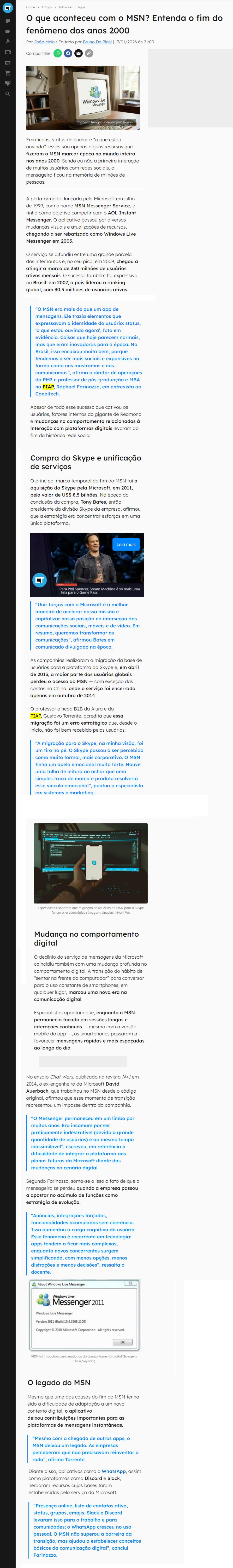 Canal Tech – NOTÍCIAS (O QUE ACONTECEU COM O MSN? ENTENDA O FIM DO FENOMENO DOS ANOS 2000 – RAPHAEL FARINAZZO)