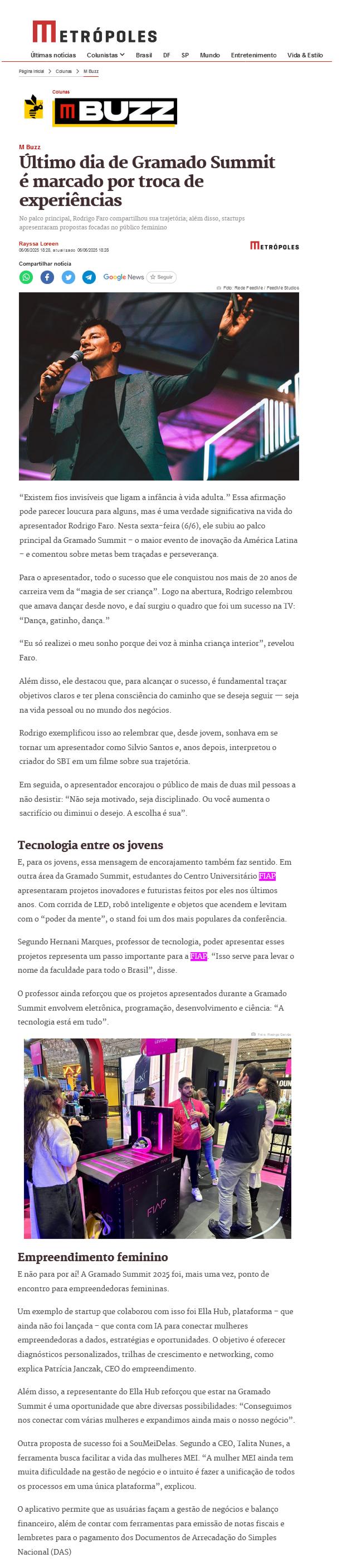 Metrópoles – NOTÍCIAS (ÚLTIMO DIA DE GRAMADO SUMMIT É MARCADO POR TROCA DE EXPERIÊNCIAS – HERNANI MARQUES)