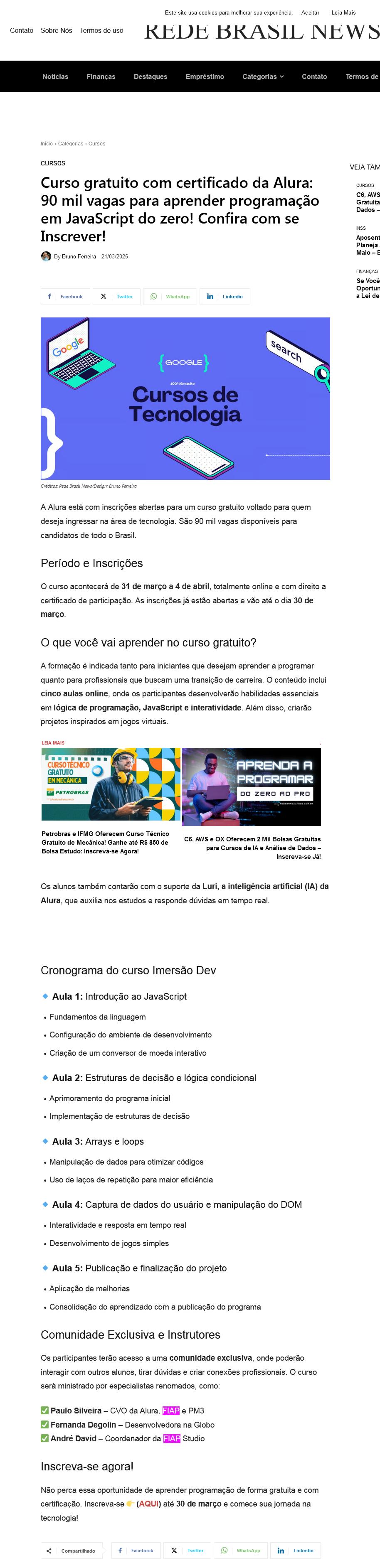 Rede Brasil News – NOTÍCIAS (CURSO GRATUITO COM CERTIFICADO DA ALURA: 90 MIL VAGAS PARA APRENDER PROGRAMAÇÃO EM JAVASCRIPT DO ZERO! CONFIRA COM SE INSCREVER! – ANDRÉ DAVID)
