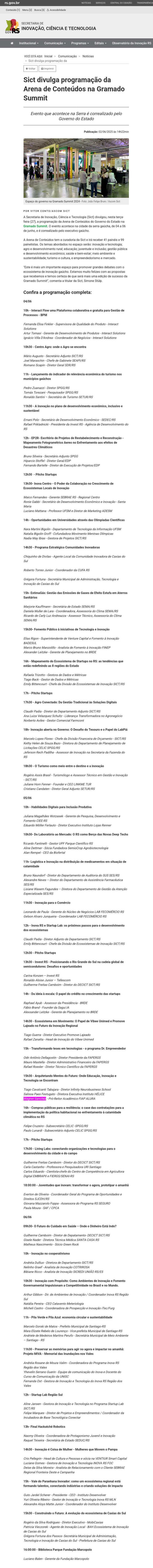 SICT RIO GRANDE DO SUL – NOTÍCIAS (SICT DIVULGA PROGRAMAO DA ARENA DE CONTEDOS NA GRAMADO SUMMIT – WAGNER SANCHEZ)