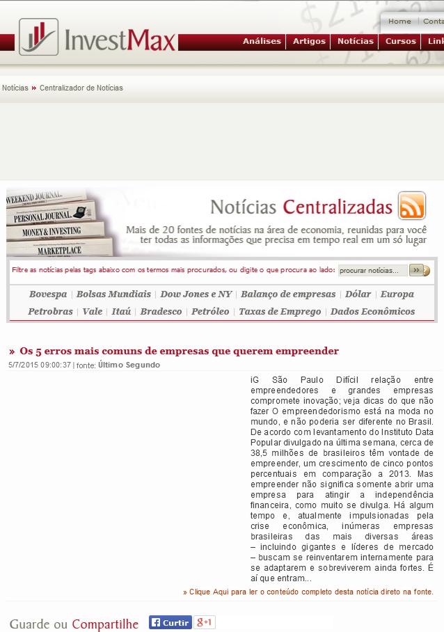 Site Invest Max – Notícias (OS 5 ERROS MAIS COMUNS DE EMPRESAS QUE QUEREM EMPREENDER – Marcelo Nakagawa)