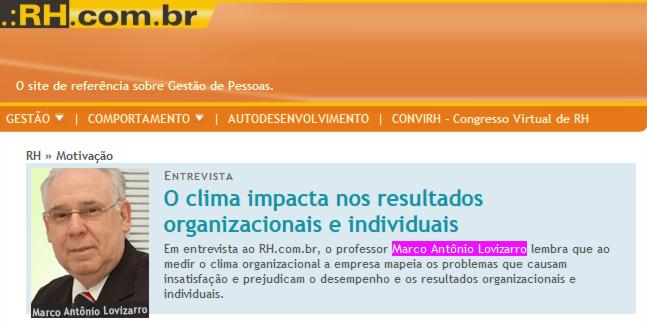 Site RH – Capa (O CLIMA IMPACTA NOS RESULTADOS ORGANIZACIONAIS E INDIVIDUAIS – MARCO ANTÔNIO LOVIZZARO)