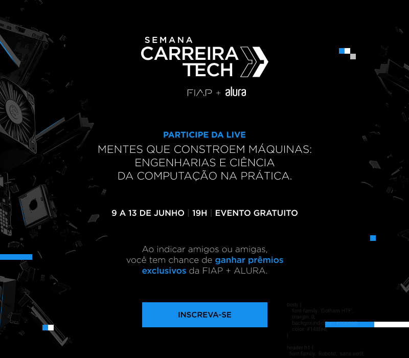 Já pensou em se aventurar nessas áreas, mas ainda quer conhecer melhor? Participe da Semana Carreira Tech e descubra como construir o futuro!
