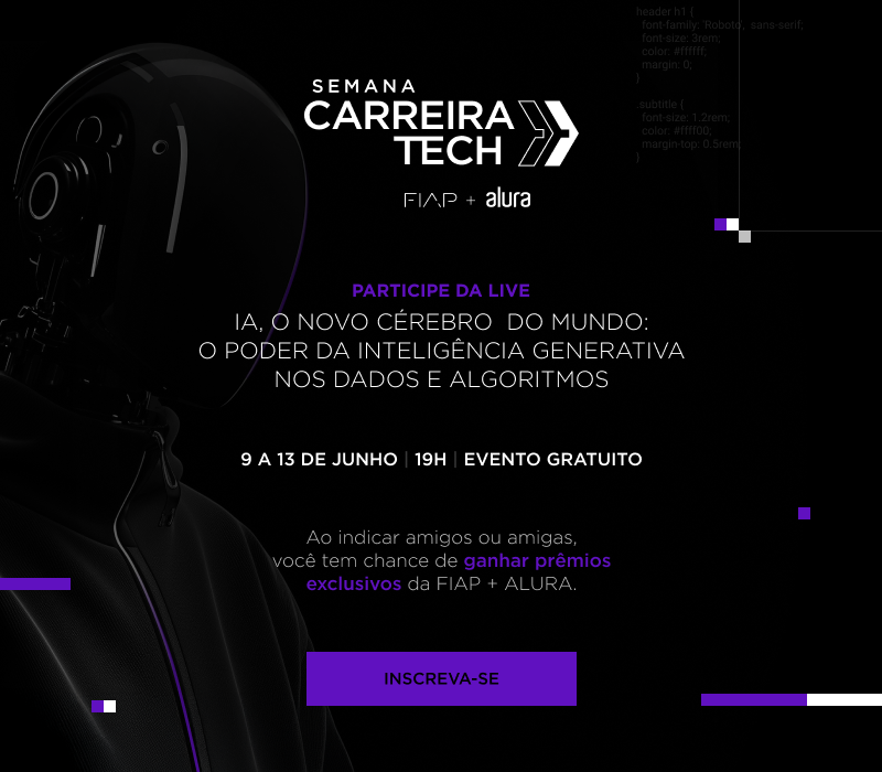 Compreender a IA é essencial para quem busca uma carreira relevante no futuro. No dia 12 de junho, a Semana Carreira Tech 2025 mergulha na Era da Inteligência Artificial & Dados, revelando como profissionais podem liderar a próxima onda de algoritmos.